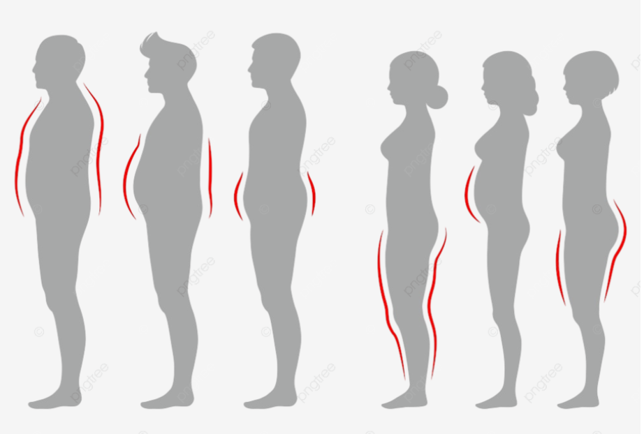 마른 비만은 대개 라운드 숄더나 골반 전방 경사를 동반합니다. 굽은 자세는 배를 더 나와 보이게 만듭니다.